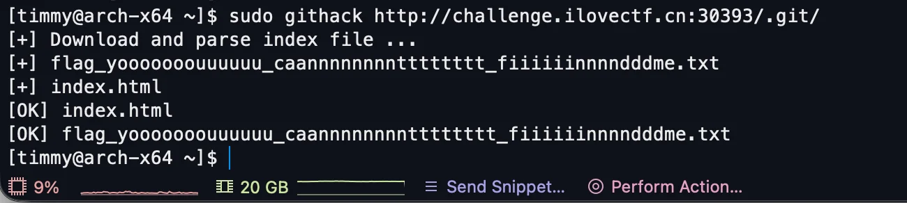 get http://challenge.ilovectf.cn:30393/.git/HEAD,文件存在,证明存在源码泄露