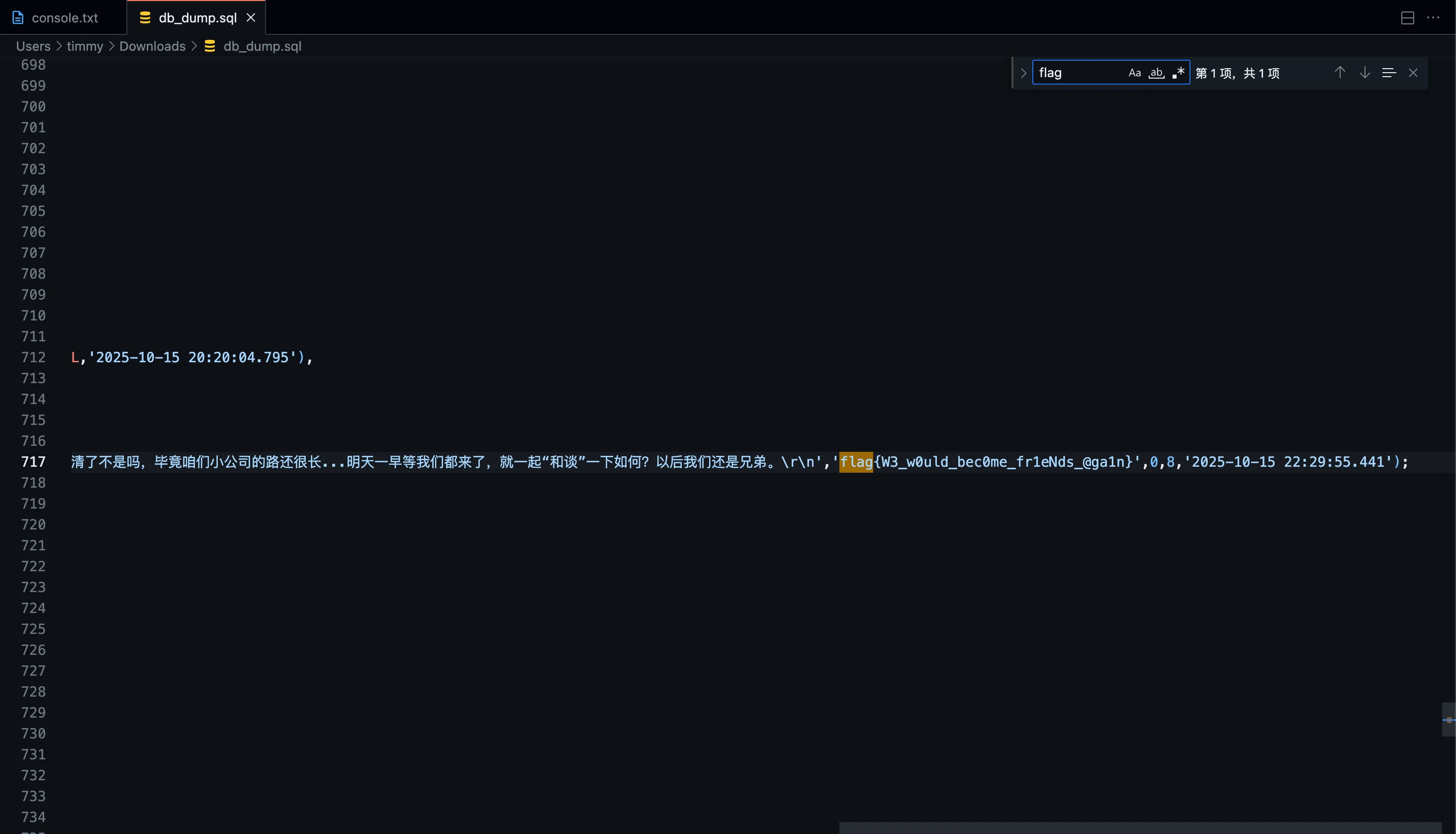 分析后发现第54行存在未使用的变量,print输出就是flag
