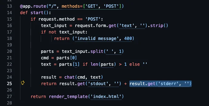 观察源码,start()会返回stderr而handle_chat_api()不会