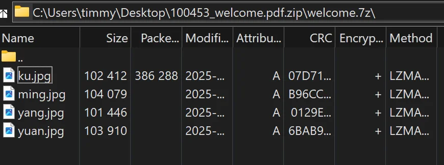 打开7z得到四张图片,文件名分别是苦命鸳鸯