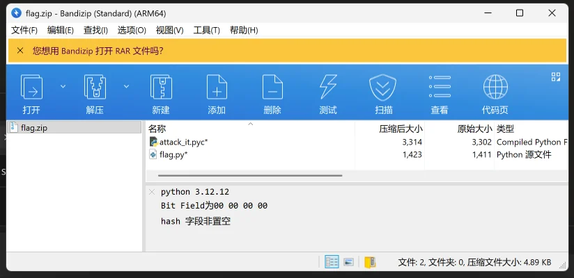 4bkcrack -C flag.zip -c attack_it.pyc -k d7fe0787 b3af2704 99fa95dc -U out.zip 111