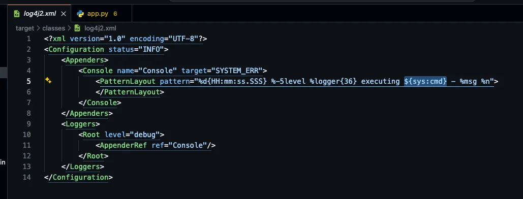 在log4j配置中会解析${sys:cmd},那么将cmd设置成${env:FLAG}即可