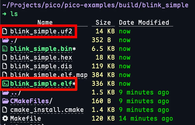 后续改动代码重新编译时,只需要重新执行make命令,然后将产物.uf2烧录。