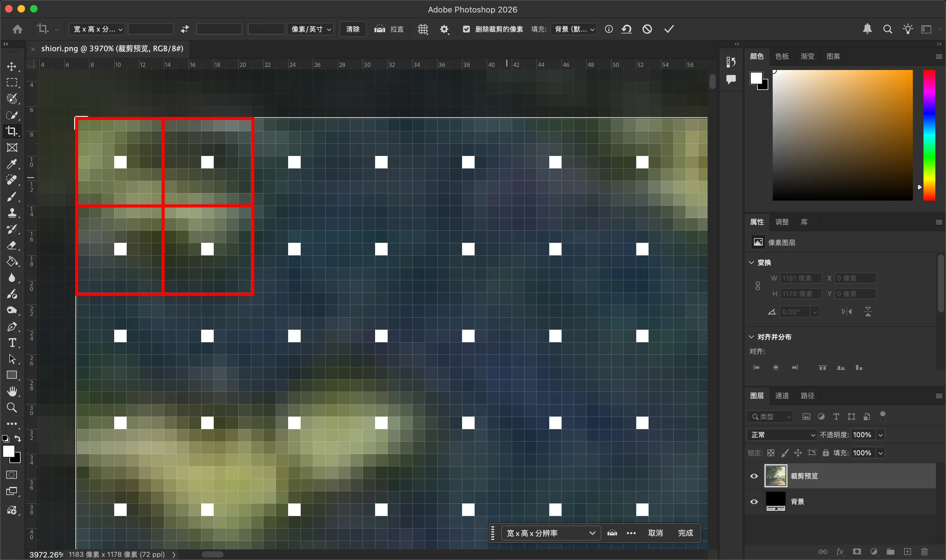 使用ps裁剪图片,上下左右都留3px,使每个点位于7x7像素的中央