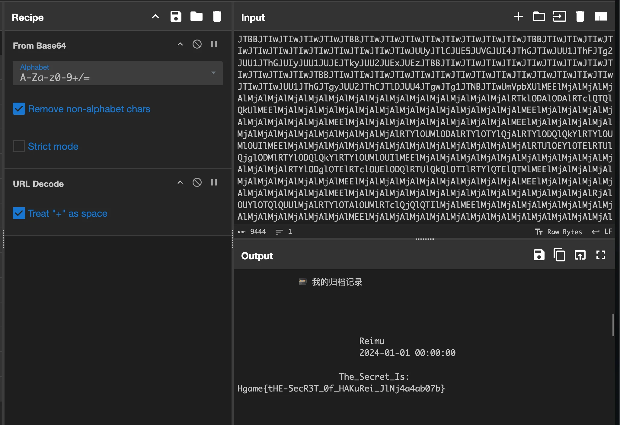 Hgame{tHE-5ecR3T_0f_HAKuRei_JlNj4a4ab07b}
