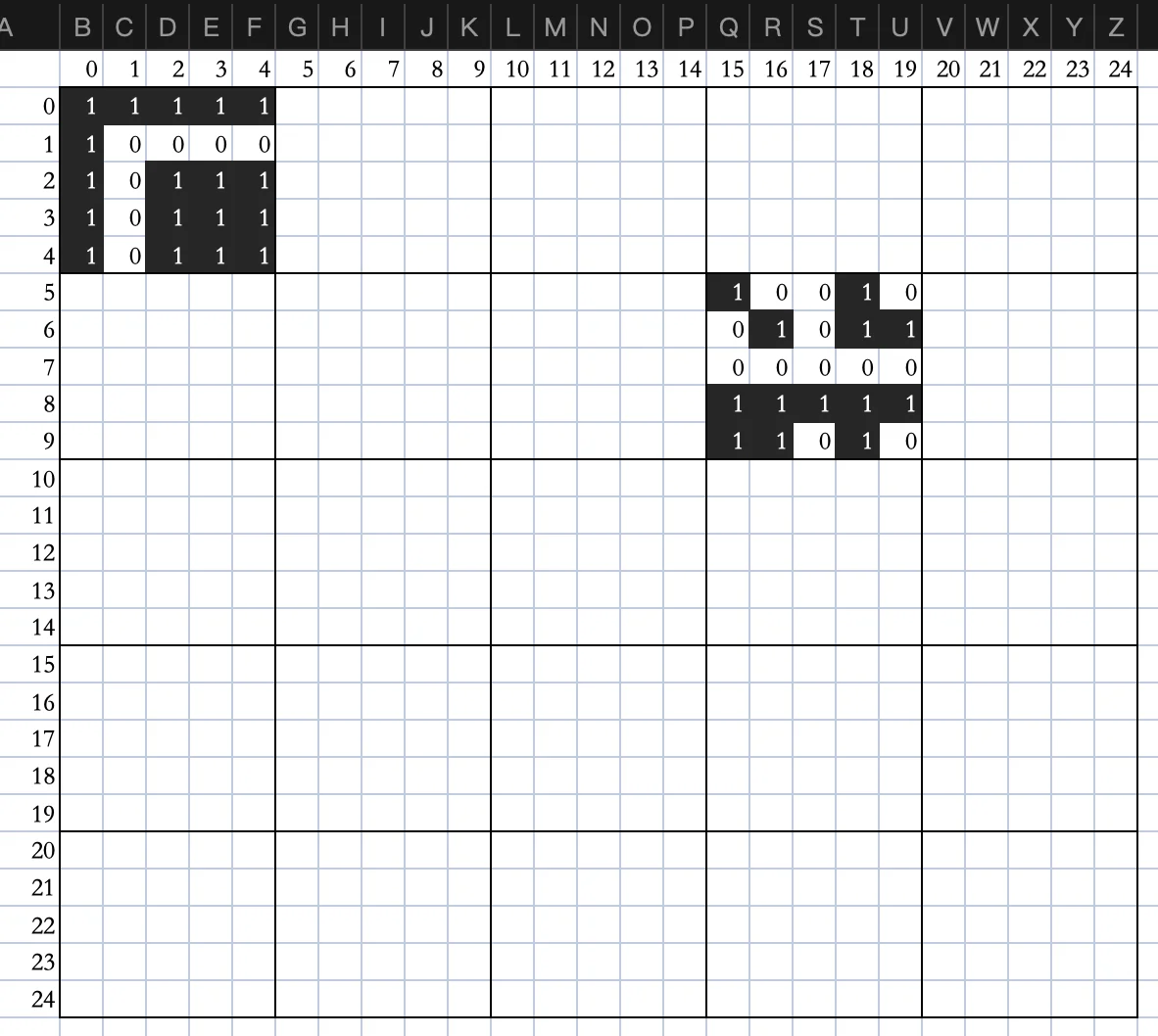 Hint 给出的内容是:将该矩阵按 从左到右、从上到下 的顺序划分为若干个 5×5 的子矩阵,并依次给出每个子矩阵按行优先(从左到右、从上到下)扁平化后的值。