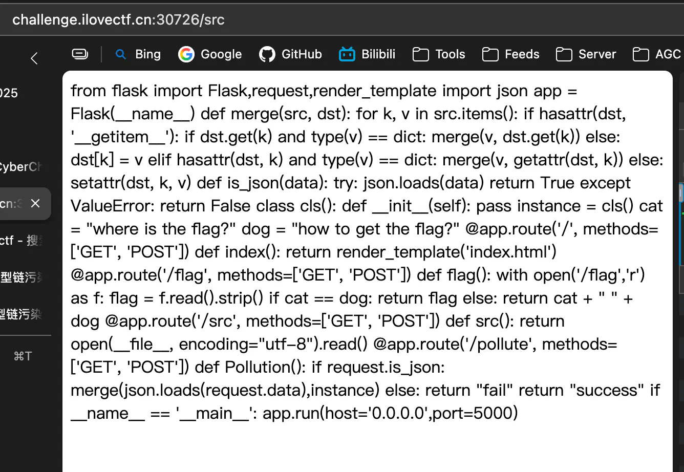 源码中需要cat == dog才会返回flag,于是需要想办法污染这两个变量