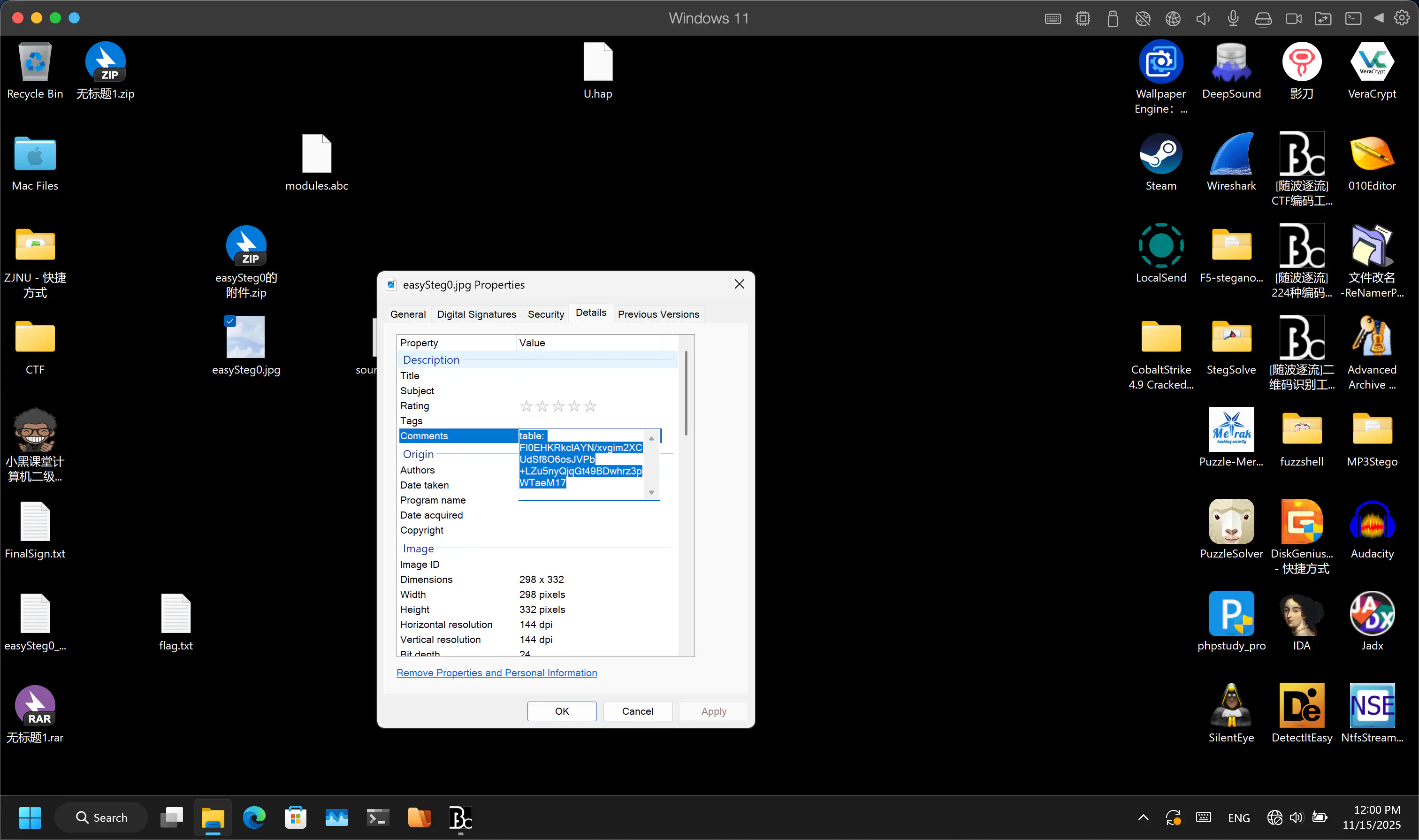 图片尾包含一个rar,分离,解压得到flag.txt,存在ntfs流隐写